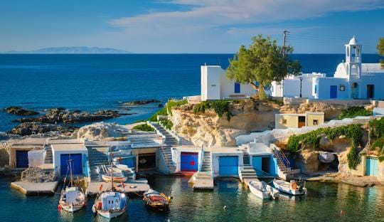 Café da manhã e traslado ao porto de Pireus para embarque no ferry boat com destino a Milos. Chegada e traslado ao hotel.