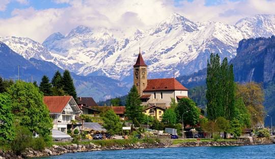 Chegada à estação de trem por conta própria. Ao meio-dia, sua viagem continua para a bela cidade de Interlaken e suas belezas de tirar o fôlego. Localizada entre os lagos de Thun e Brienz, no sopé das imponentes montanhas de Eiger, Mönch e Jungfrau, esta pequena cidade oferece vistas espetaculares